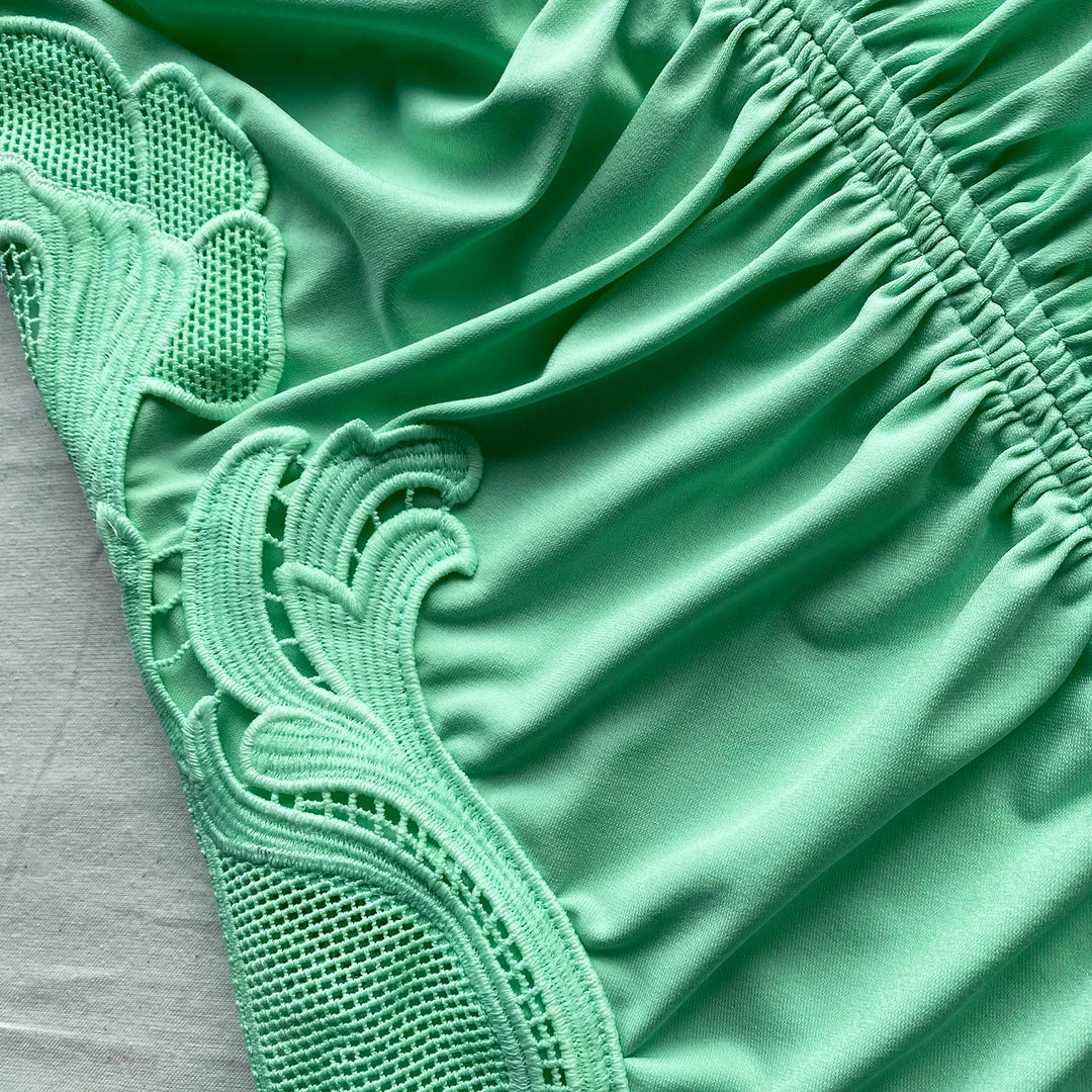 This green maxi dress is cut from drapey jersey. It features a flattering v neck and ruching through the body. The shoulders are fitted with removable shoulder pads for a subtle structured silhouette. It is designed with lace panels at the waist and a split at the front of the skirt. Check the Size Guide to find your perfect fit.