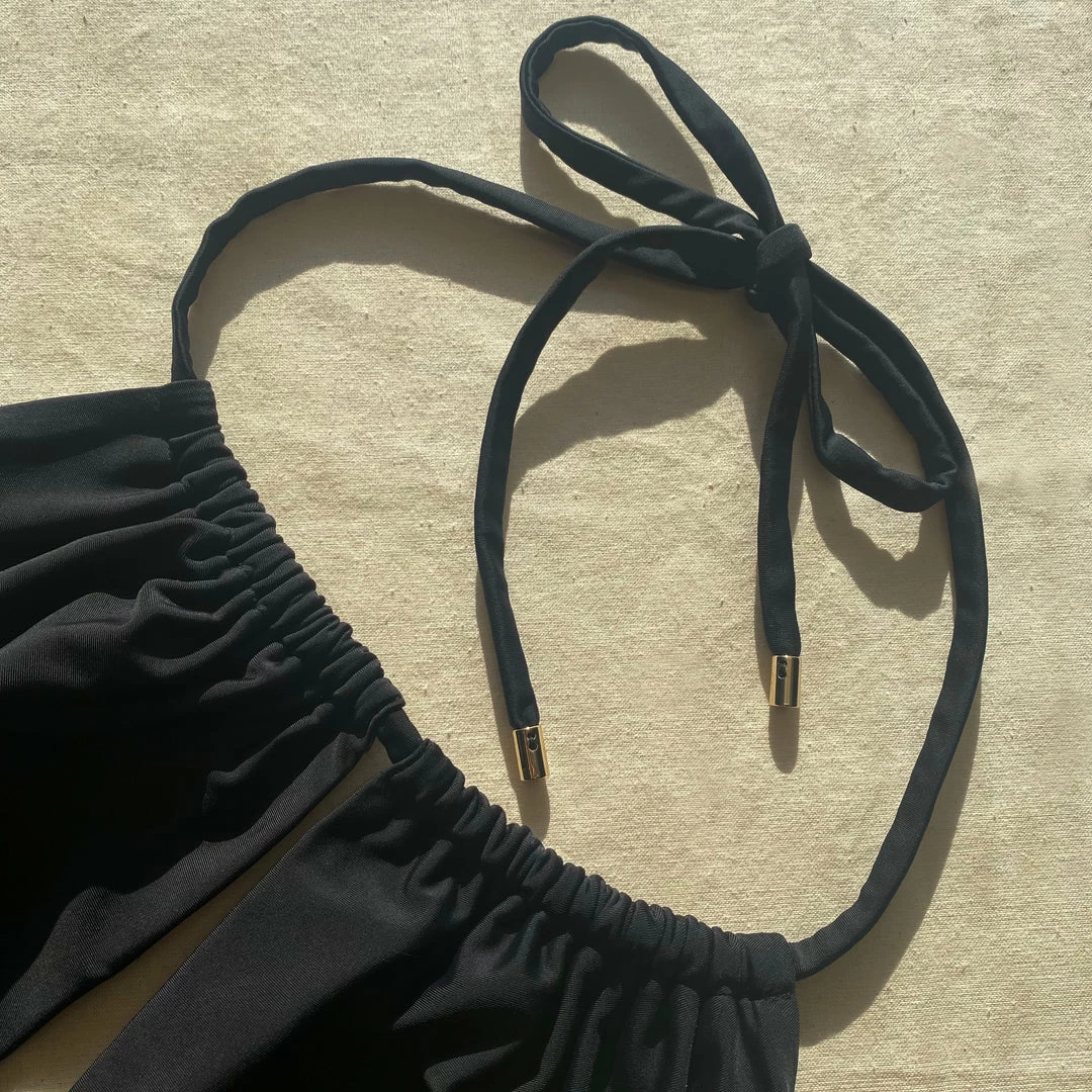 This swimsuit is cut from repreve recycled polyester. It is designed with a halter neck and cut out details. Check the Size Guide to find your perfect fit.