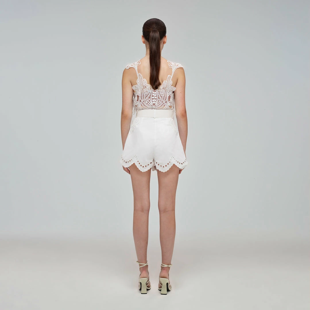 Self-portrait Swim & Resort White Broderie Scallop Canvas Short