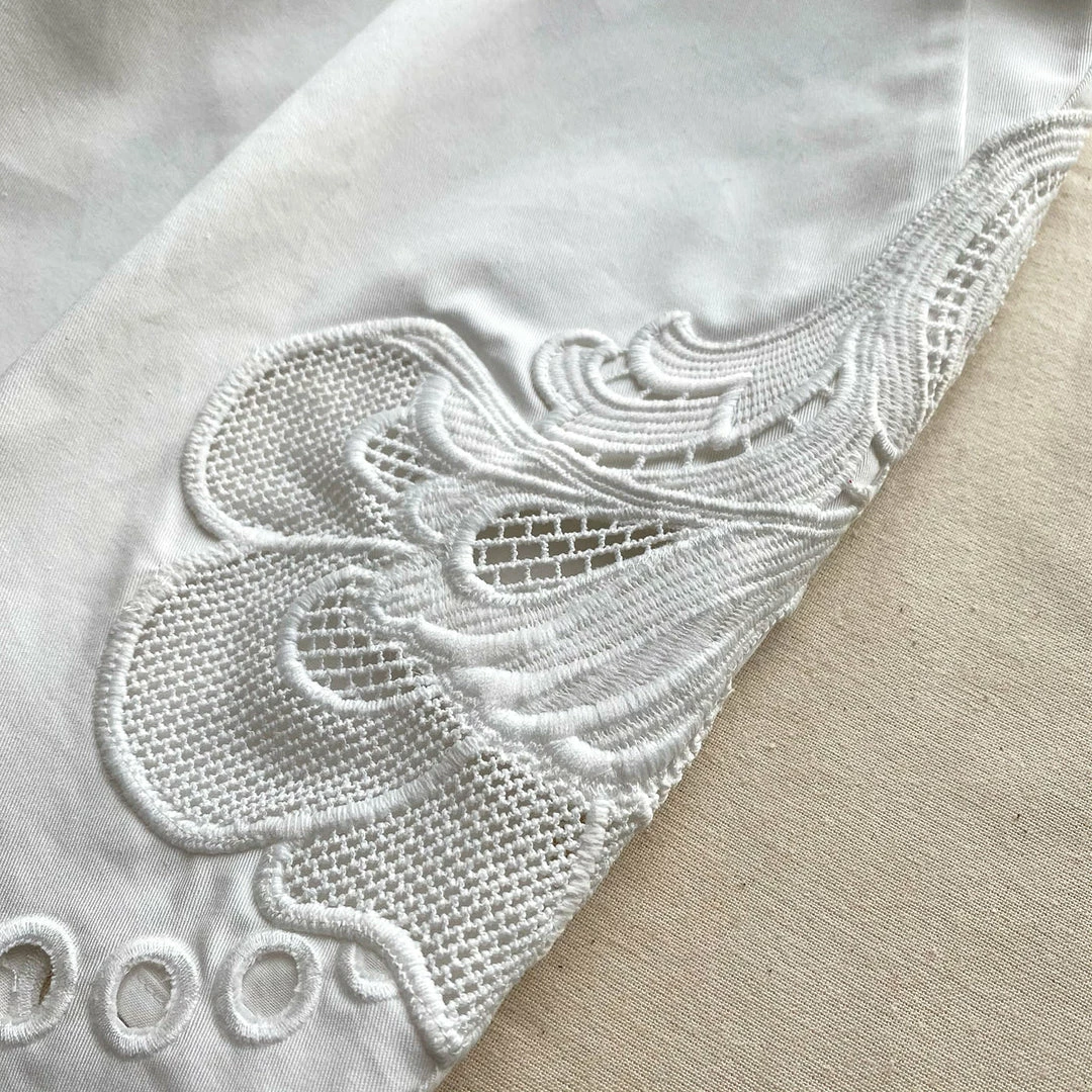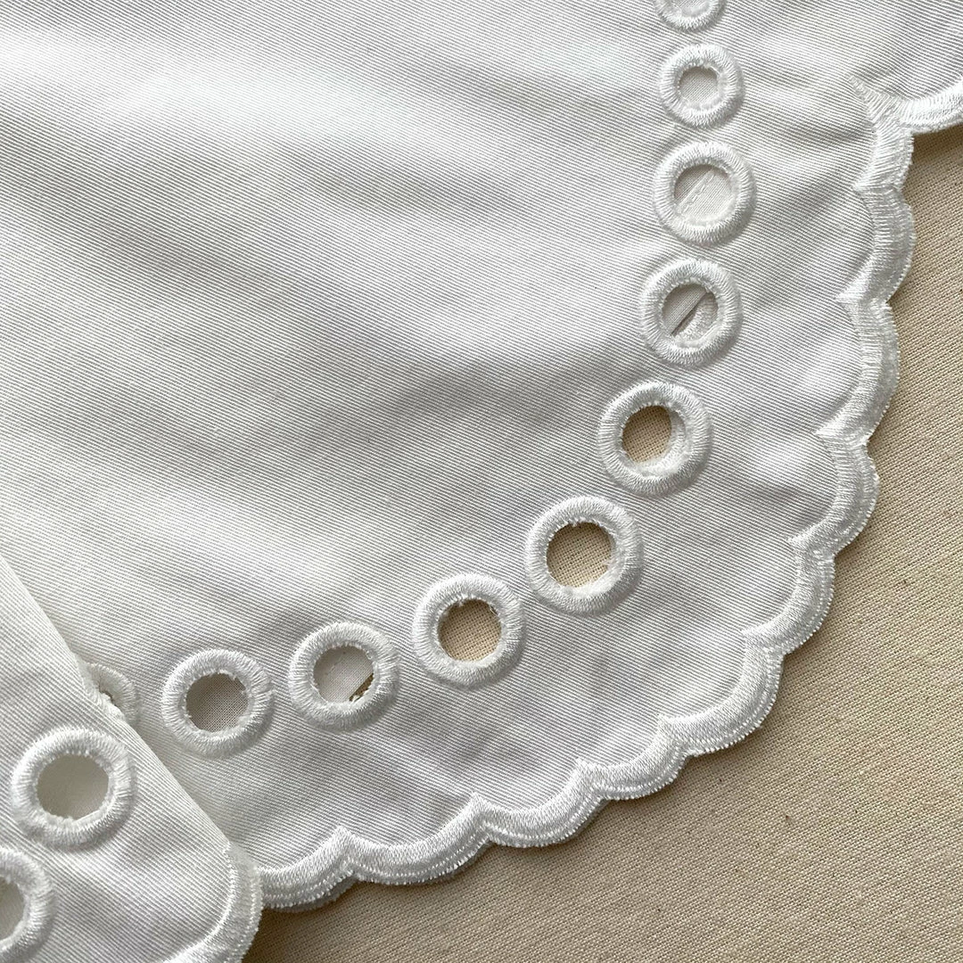 This short is cut from white broderie cotton canvas. It is designed with lace panel motifs and a broderie scalloped hem. The waist is finished with a self-fabric belt and buttons at the front. Check the Size Guide to find your perfect fit.