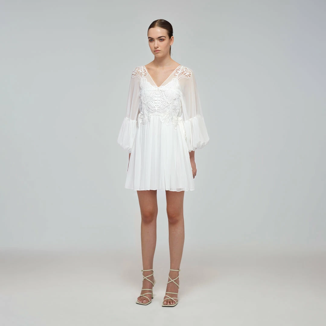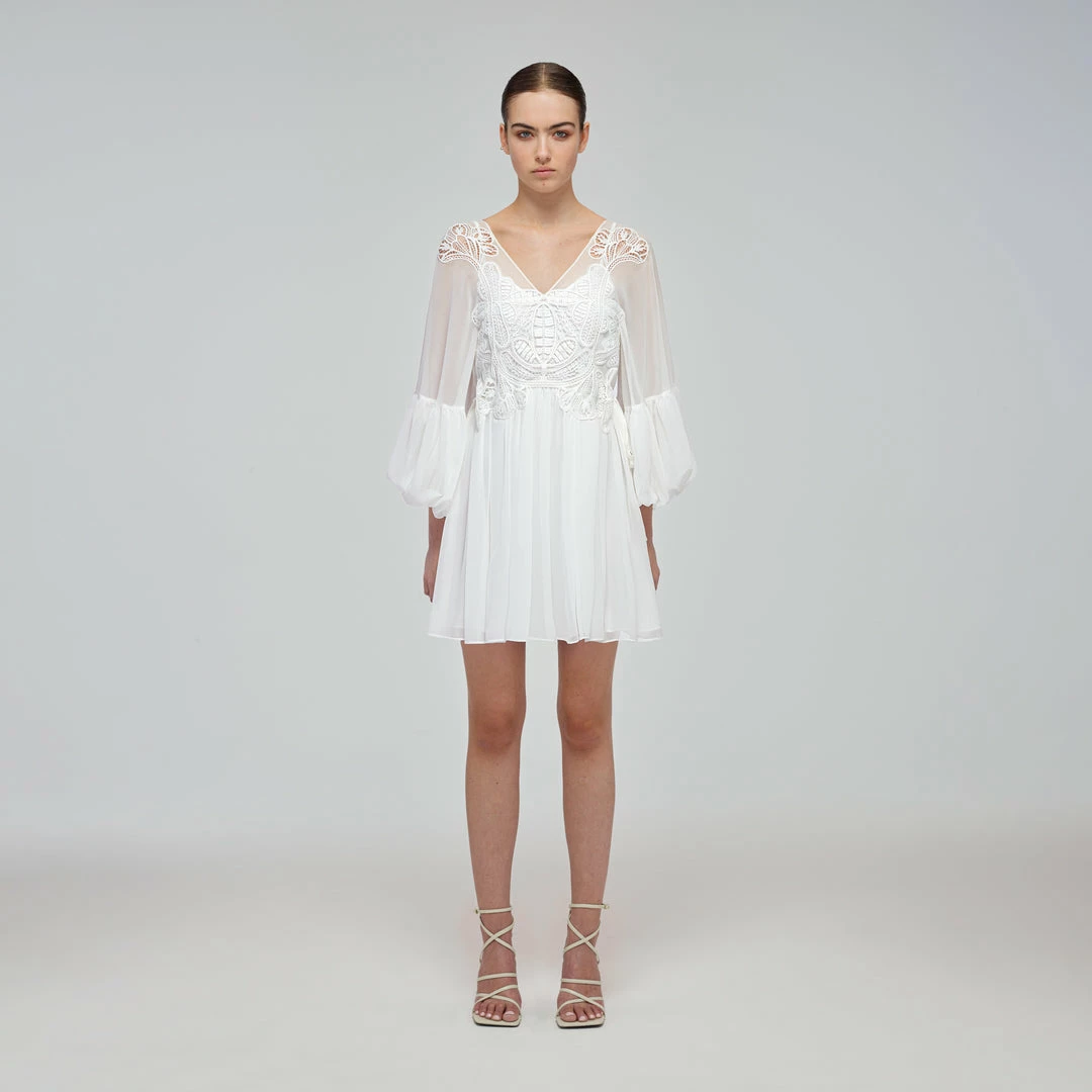 Self-portrait Swim & Resort White Macrame Lace Georgette Mini Dress