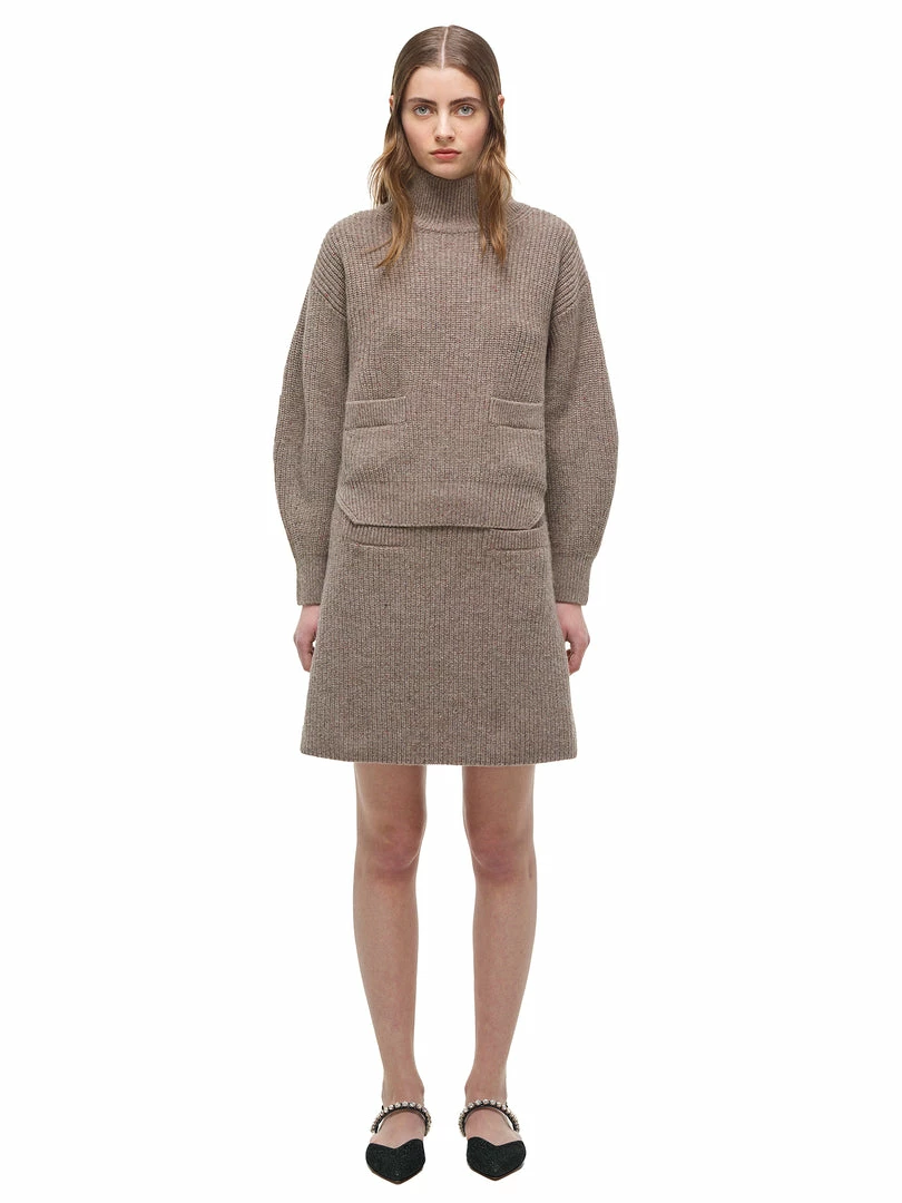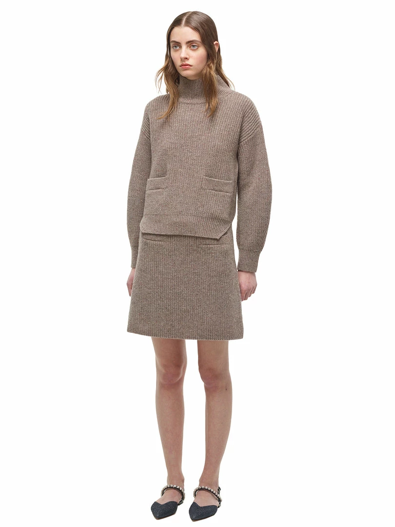 This taupe cashmere jumper has been designed with a funnel neck and boxy body shape with functional pocket at front. Check the Size Guide to find your perfect fit.