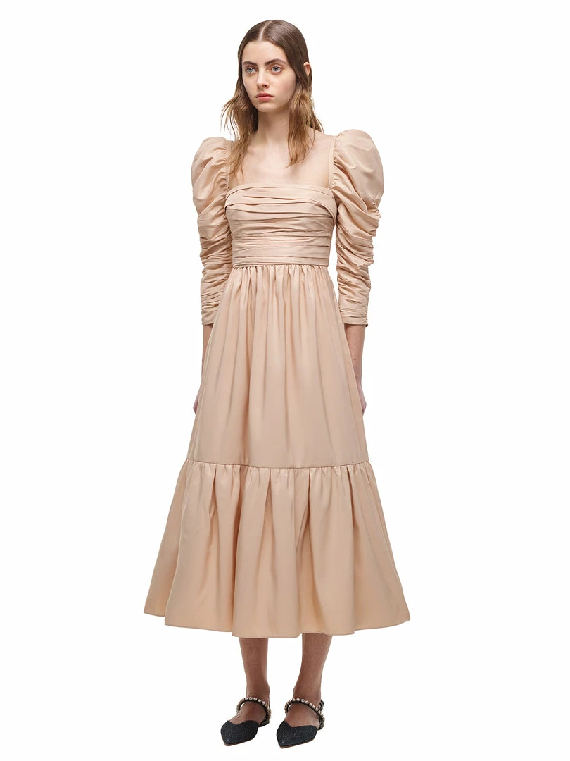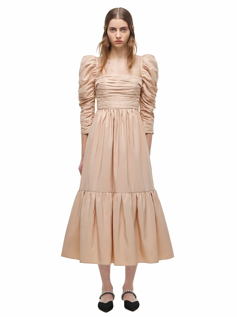 Self-portrait Taupe Taffeta Midi Dress READY TO WEAR