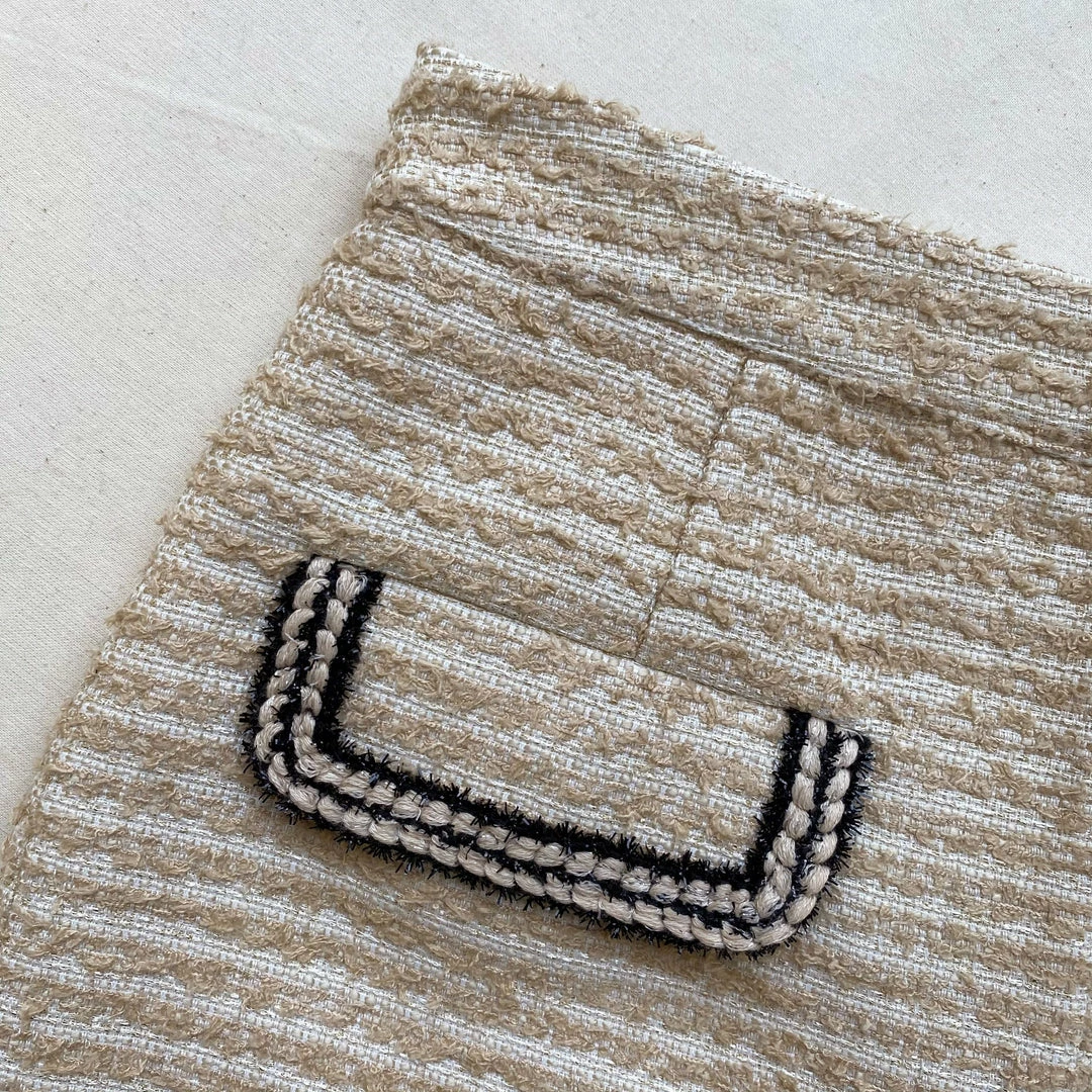This boucle bermuda short features front flap pockets and contrast trims. It is it fitted with a high waist and a slim leg. Check the Size Guide to find your perfect fit.