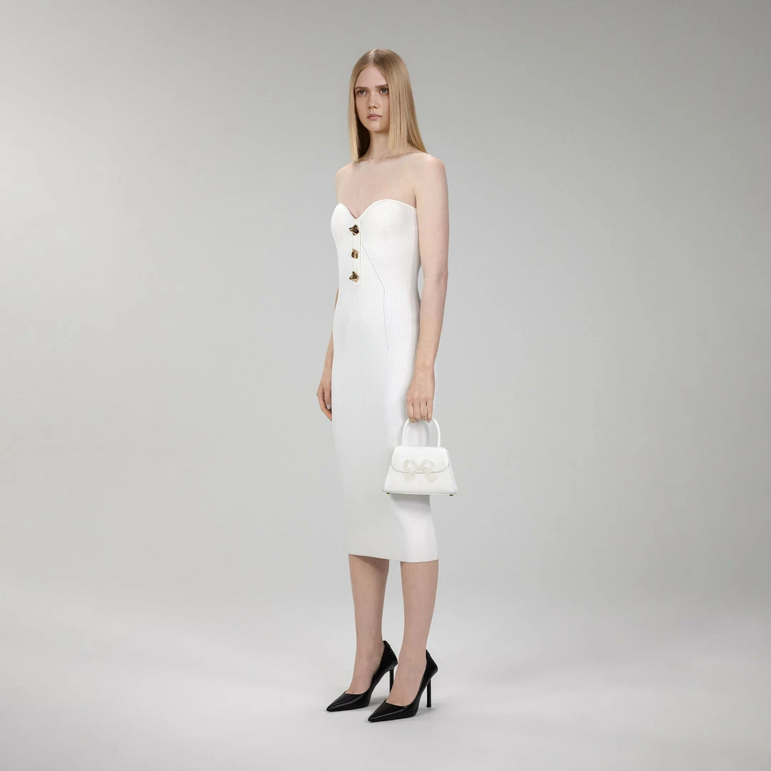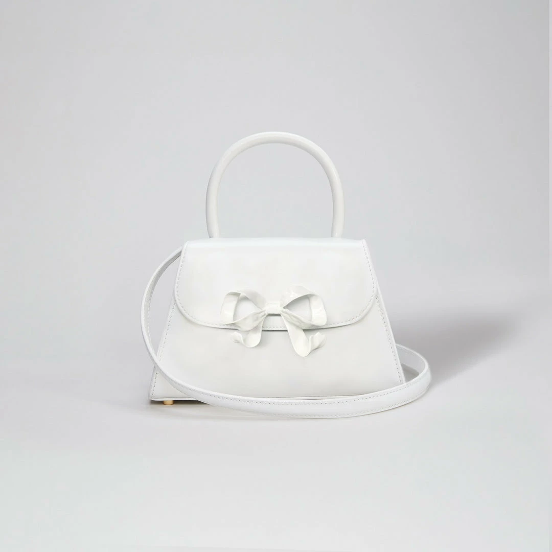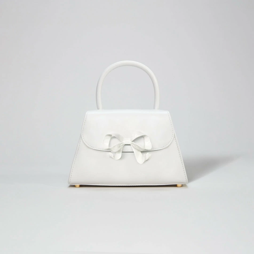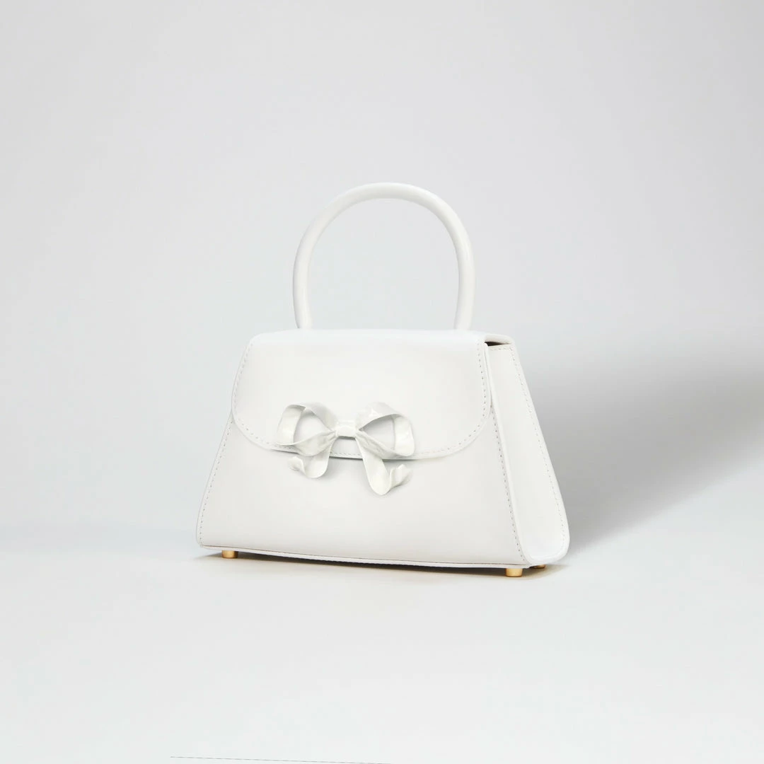 A modern classic, The Bow is presented in White with a tonal bow executed in sculpted Enamel. Crafted entirely from Napa leather, this is the perfect counterpoint to any outfit, from casual denim to a floor-sweeping sequinned look. The structural shape features a top handle and comes with a detachable shoulder strap – wear it cross-body when running errands or carry it on your arm for black-tie dinners. Only available at self-portrait.