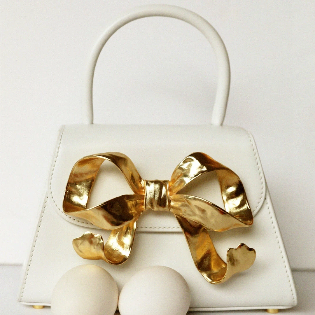 A vivid clash of white and gold makes The Bow a modern statement. The feminine motif is presented in Gold Hardware for an eye-catching combination – carry it as a contrast to an all-denim look or it’ll provide a perfect pop against a classic LBD. Crafted entirely from Napa leather, the timeless silhouette features a top handle with a detachable shoulder strap and fastens with a magnetic flap closure.
