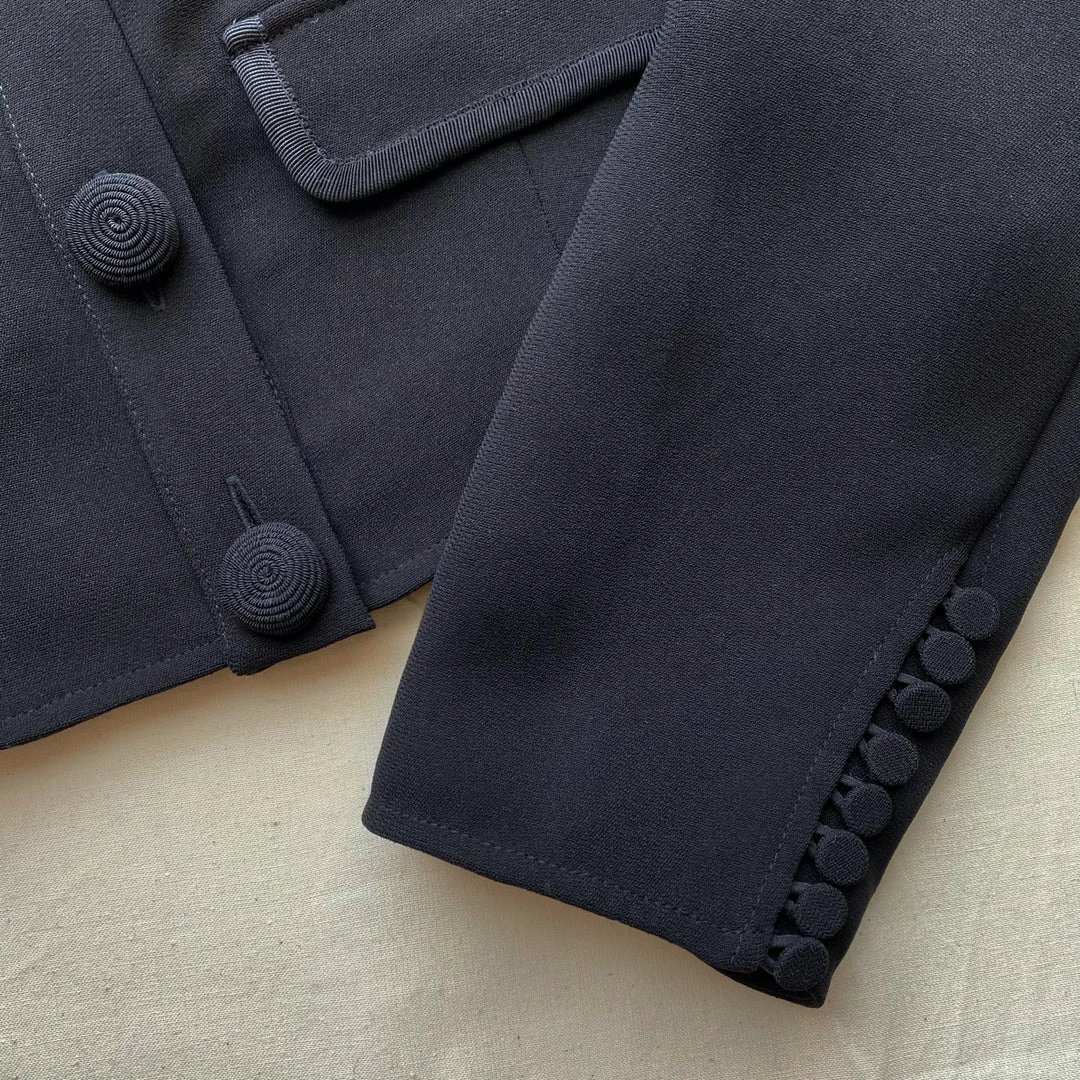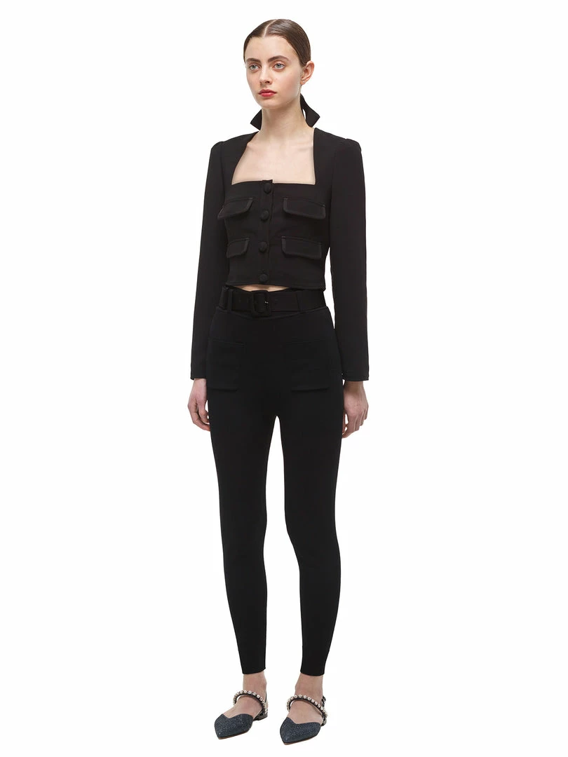 This black top is crafted from heavy crepe and has a fitted silhouette. It is designed with a flattering square neckline and detailed with pockets and button placket. Check the Size Guide to find your perfect fit.
