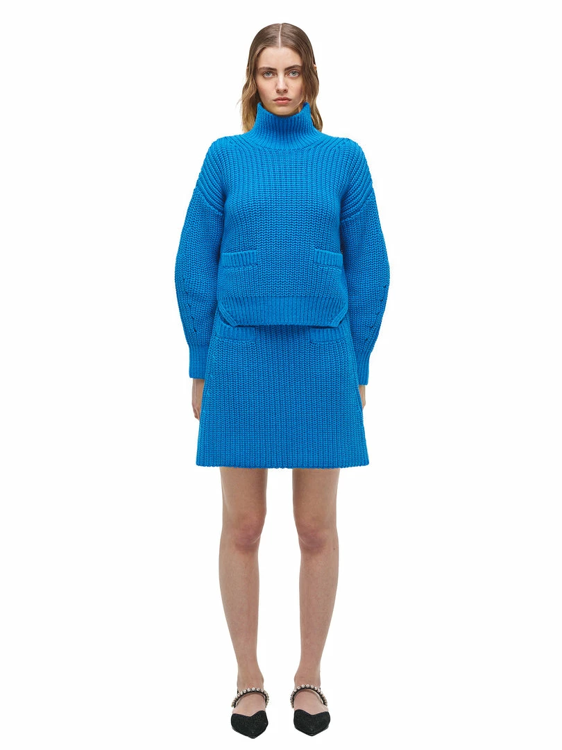 This turquoise blue jumper has been designed with a funnel neck and boxy body shape with functional pocket at front. Check the Size Guide to find your perfect fit.