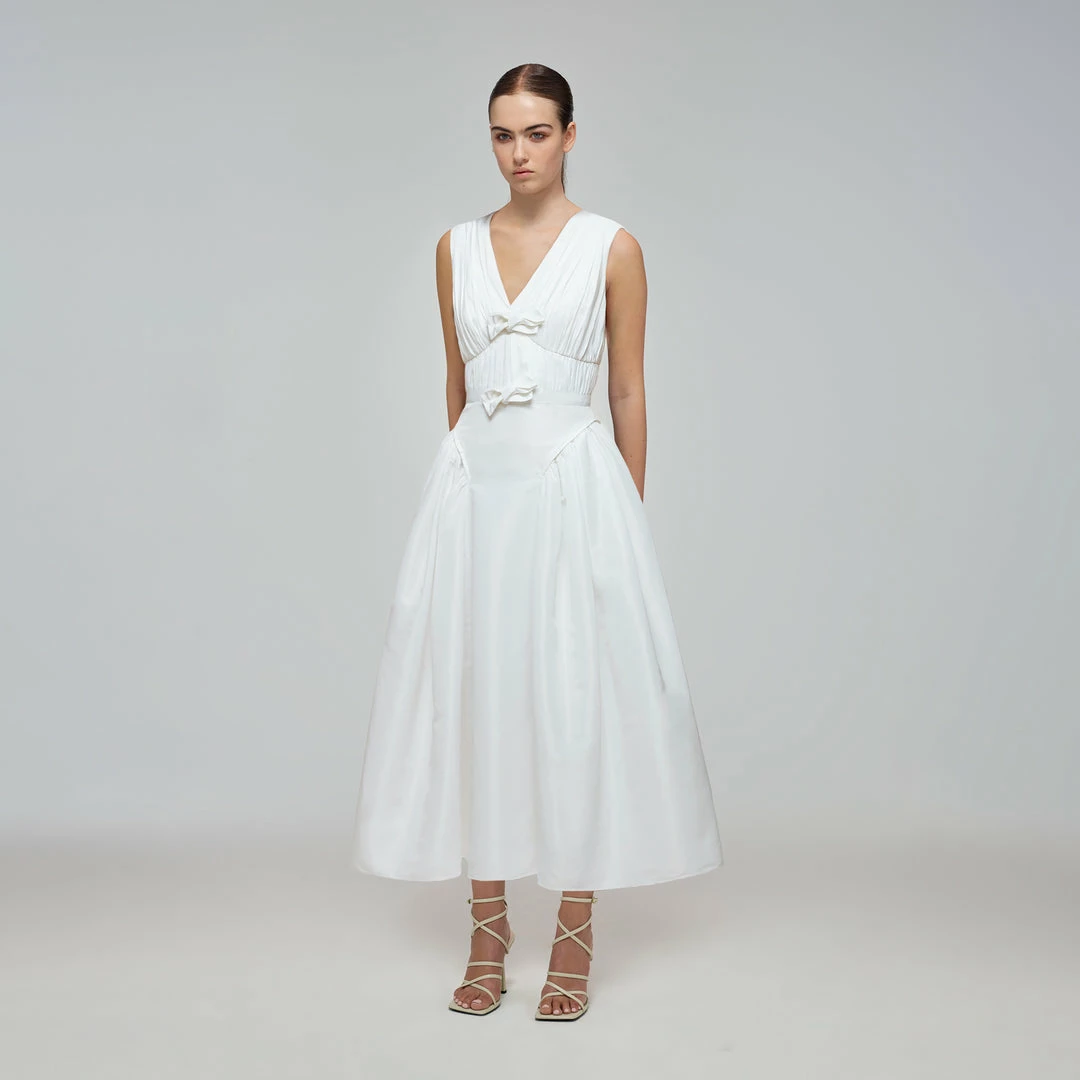 Self-portrait White Bow Detail Midi Dress READY TO WEAR