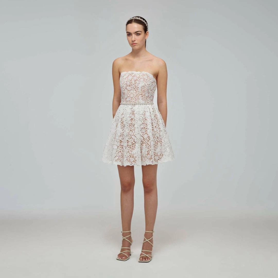 Self-portrait White Floral Guipure Strapless Mini Dress READY TO WEAR