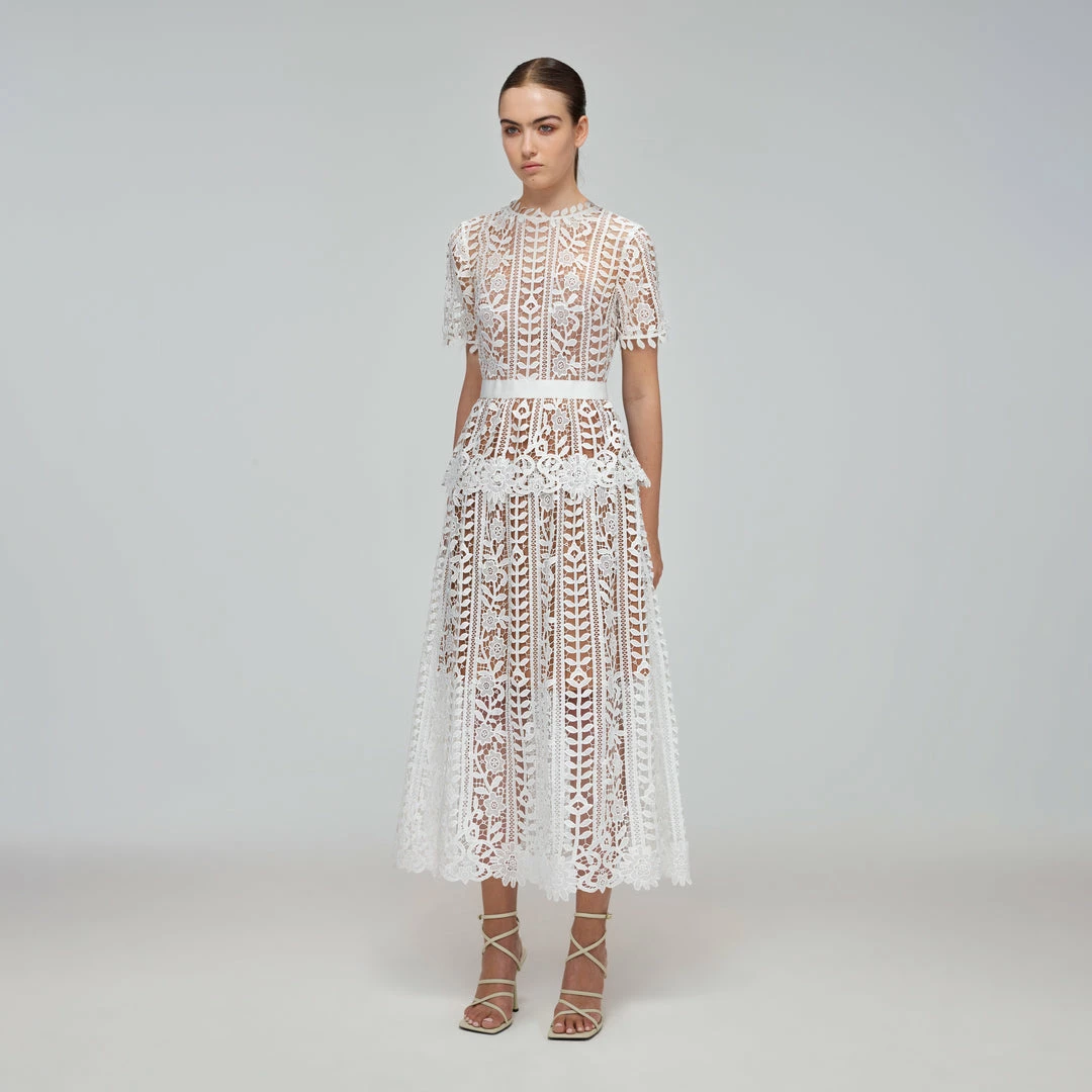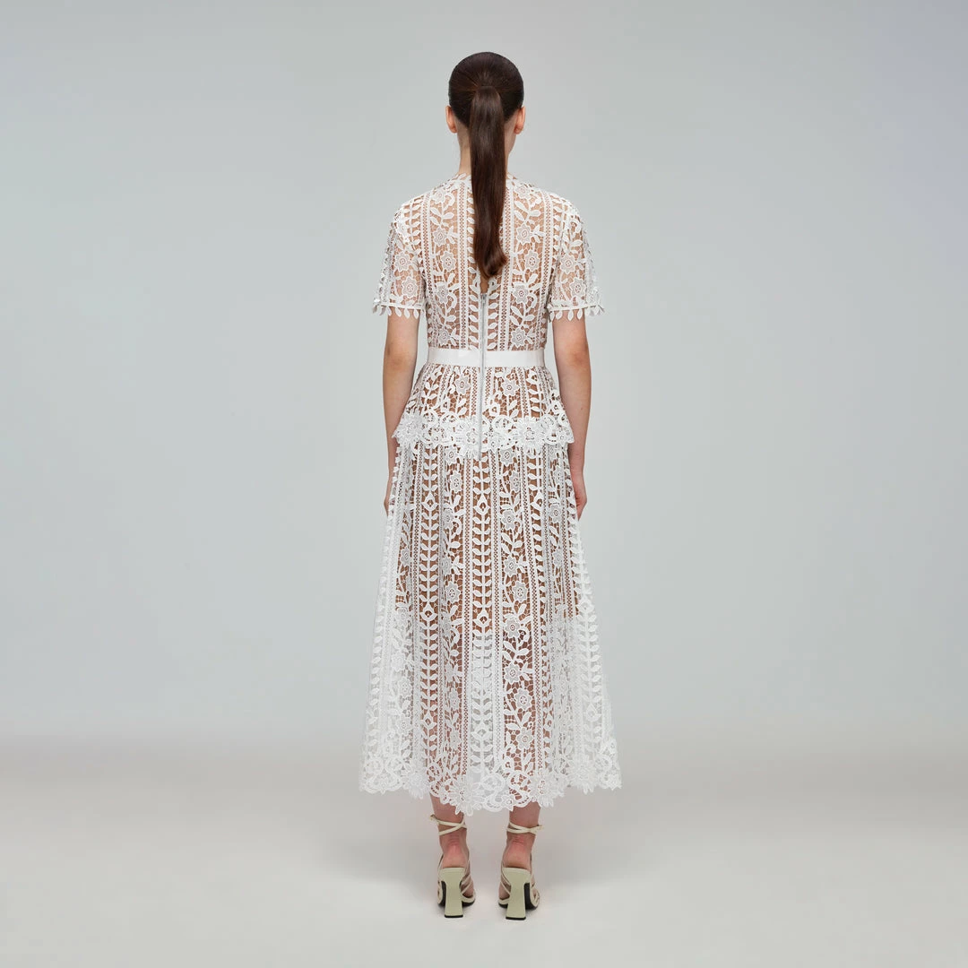 Self-portrait White Guipure Lace Peplum Midi Dress