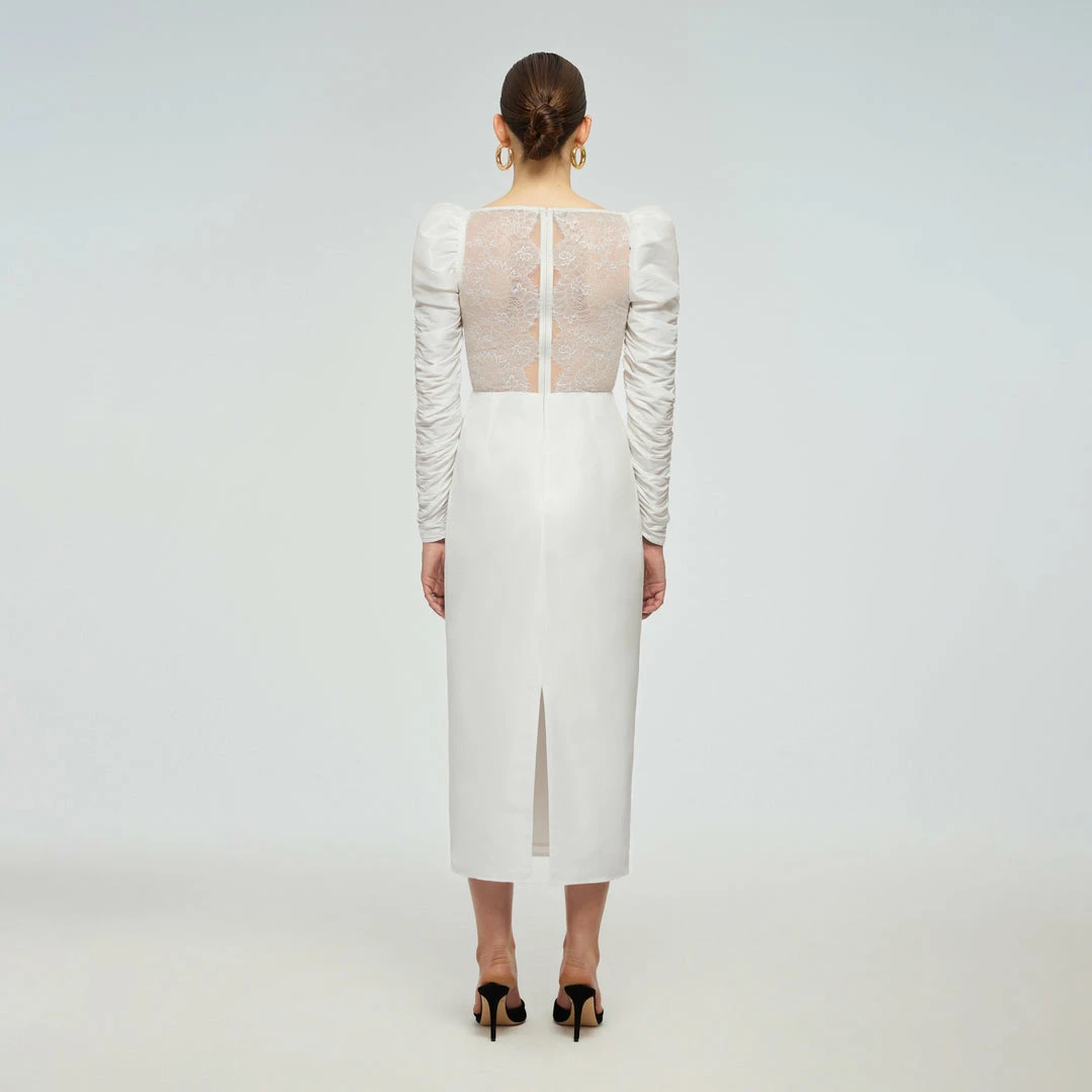 Self-portrait White Lace Back Taffeta Midi Dress