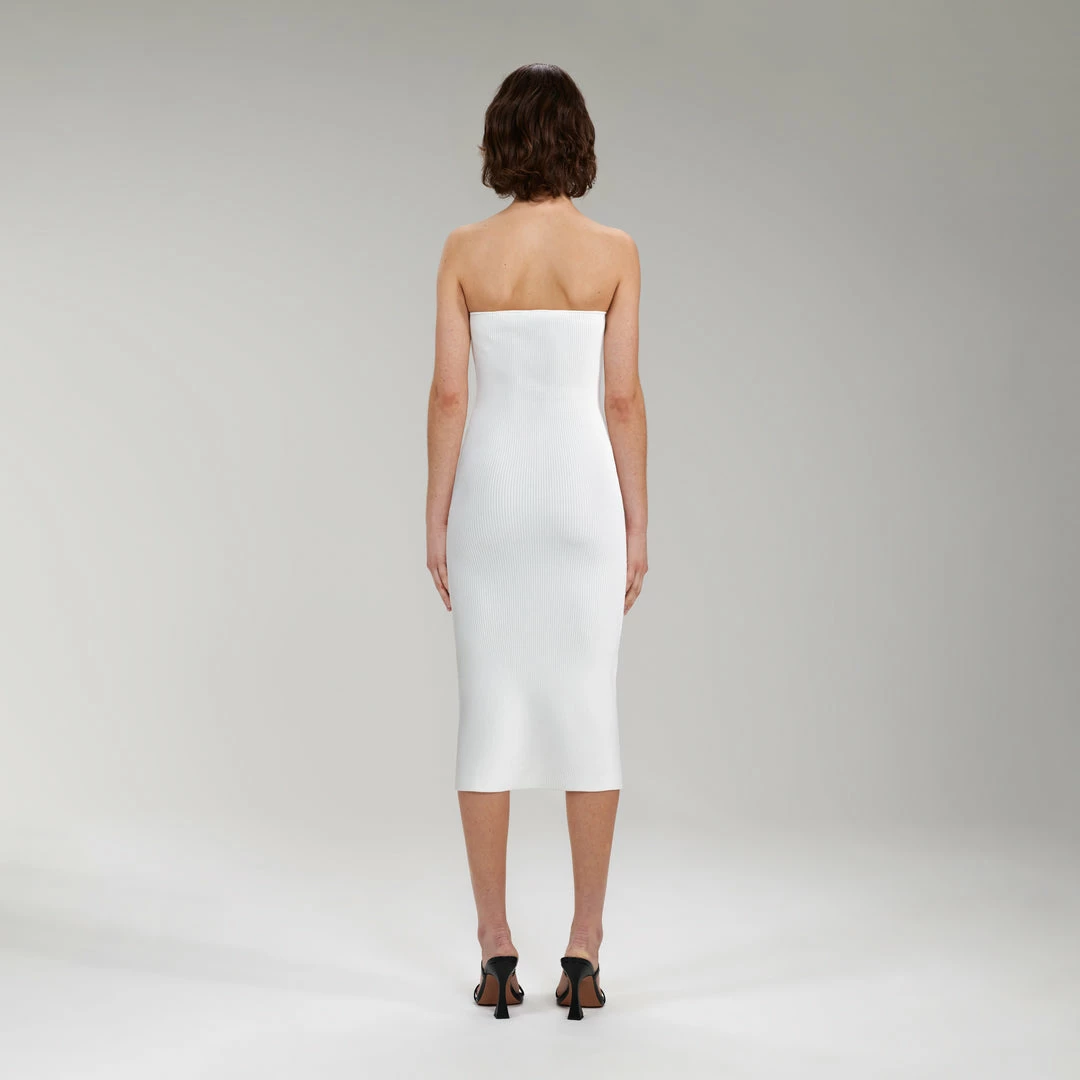 Self-portrait White Strapless Ribbed Knit Midi Dress NEW ARRIVALS