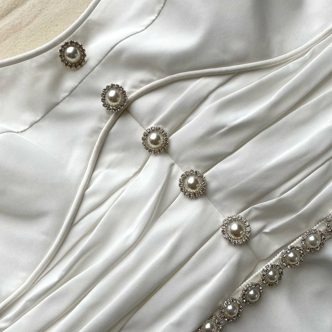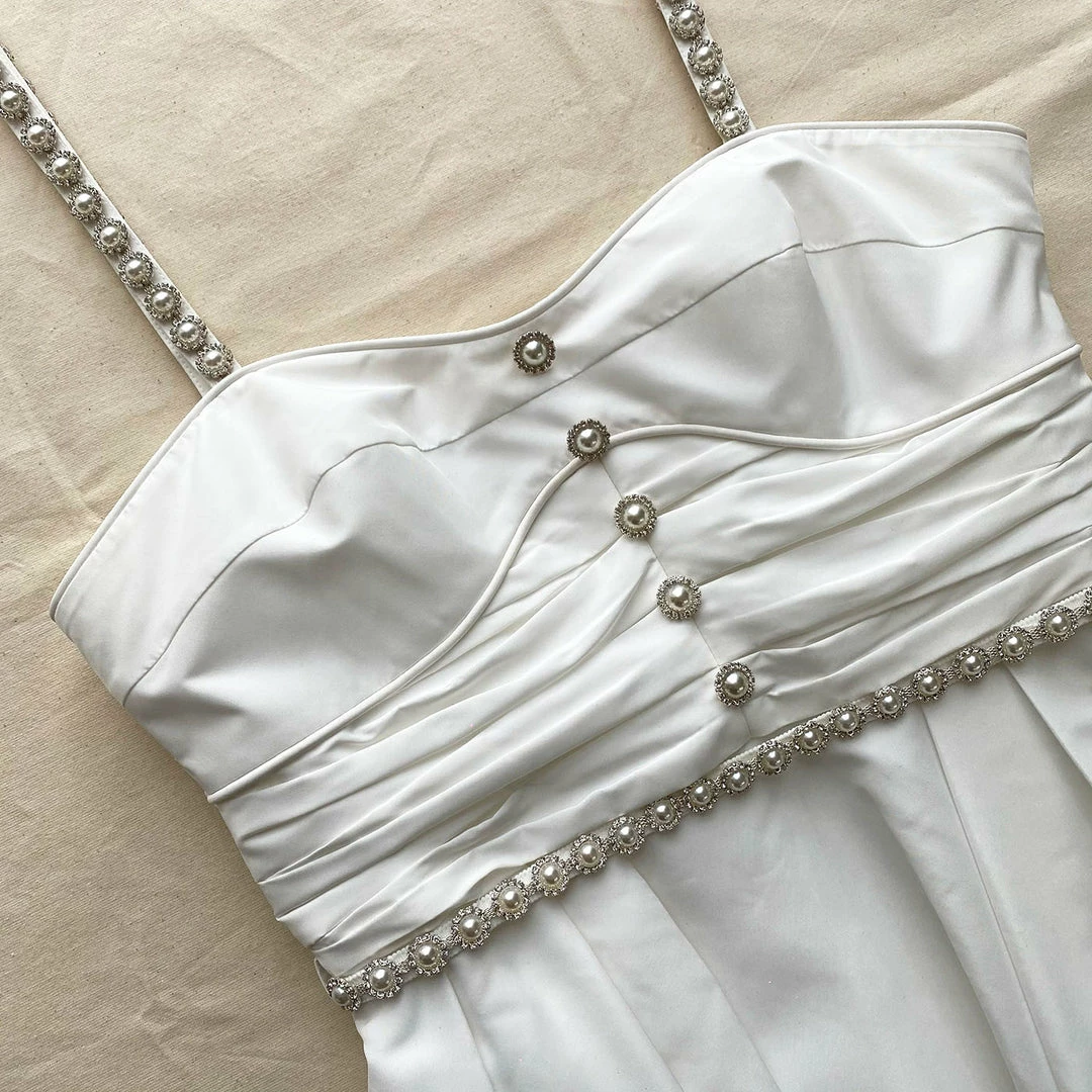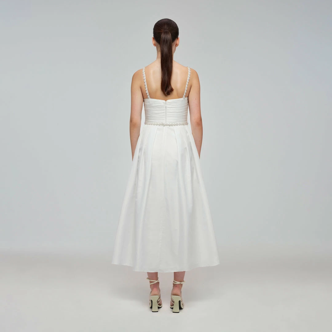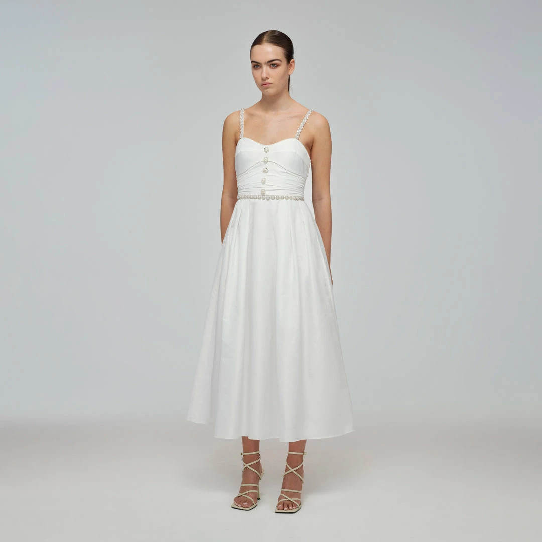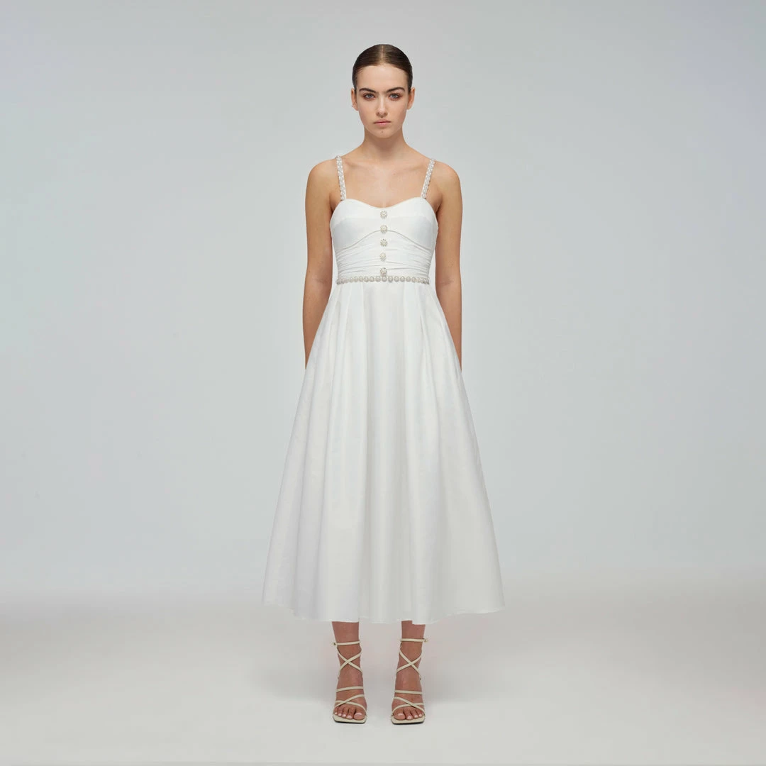 Self-portrait White Taffeta Diamante Strap Midi Dress READY TO WEAR